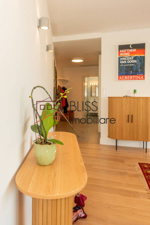 The La Maison Dumbrava Rosie 18 complex, in which the apartment is located, is a boutique building where the charm of the interwar aristocracy of old meets modern and minimalist contemporary design, to outline a special lifestyle. The project promises a series of unique features such as 4 meter high ceilings for the ground floor and first floor, natural light in all rooms, floor-to-ceiling windows and doors on the terraces, air conditioning systems integrated in the ceilings, concierge services, underground parking or total sound insulation of ceilings and walls.